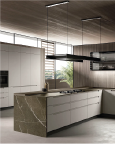 The wood finishes, stainless steel and high-quality surfaces add a touch of elegance and durability to this kitchen, creating a perfect environment for cooking and sharing special moments with family or friends.